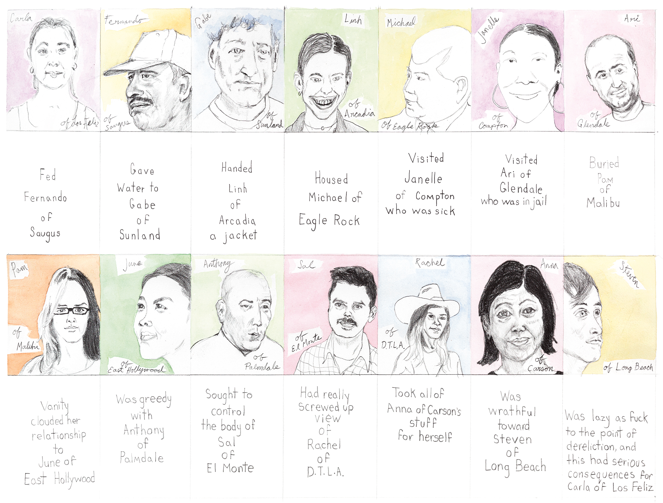 Source drawings from Compassion and Self Deception (Llano Del Rio Guide #8), plannded for a covid cancelled exhibition at Skid Row History Musuem and Archive.